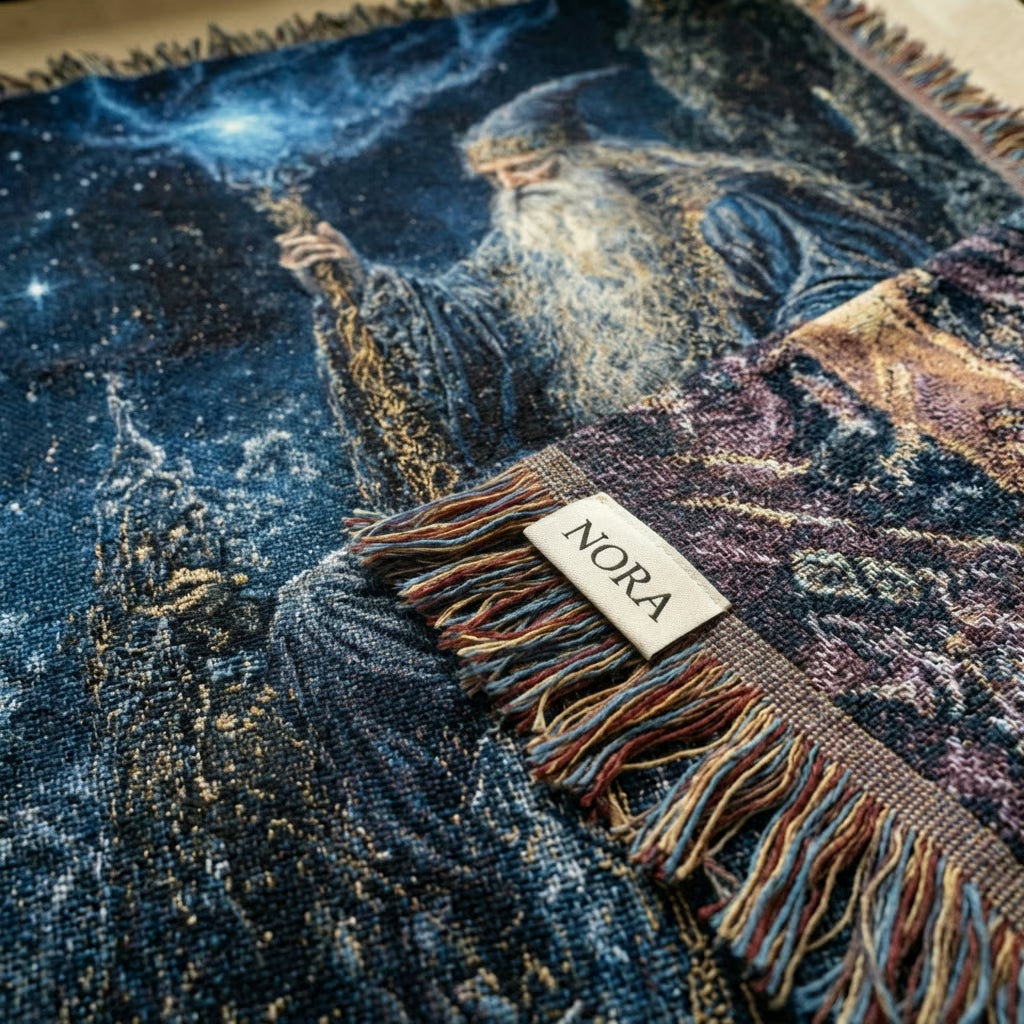 This isn't some cheap printed blanket from Amazon. I actually weave these, which is why they look and feel like vintage band merch from the 80s. The weight alone will tell you it's legit.
